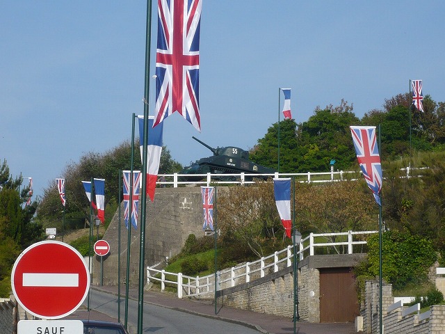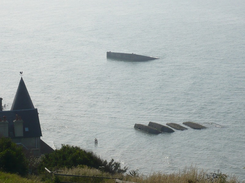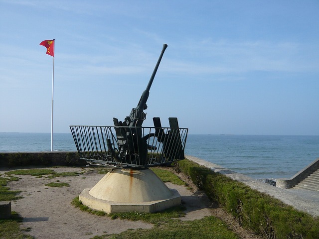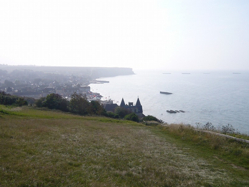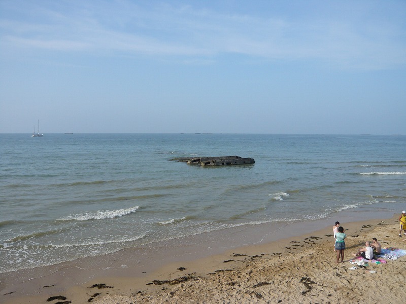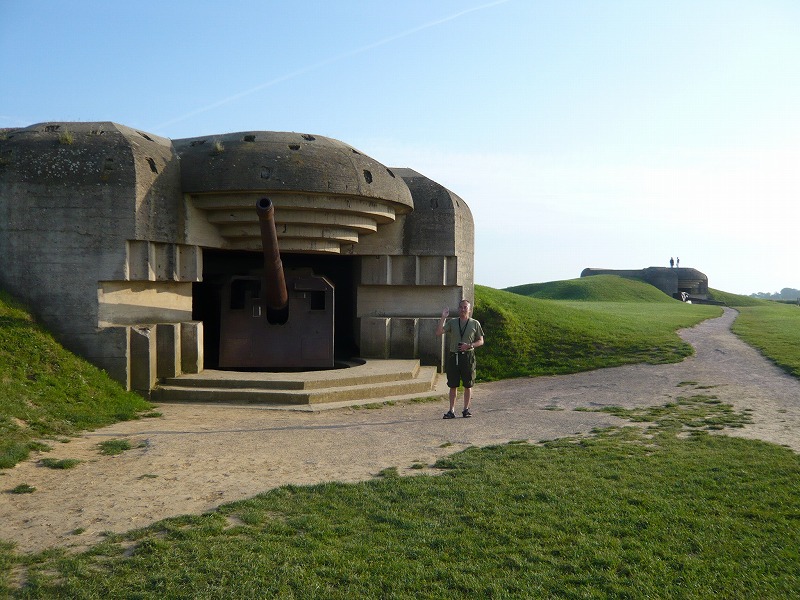 ドイツ軍防御陣地 WN48 今回のフランス・ノルマンディー地方の戦跡を巡る旅で、もっとも行きたかった場所のひとつについに到着。前の記事「ノルマンディーの戦跡1 行程の説明」 で紹介した本「ノルマンディー上陸作戦」にのっていたドイツ軍の砲台(トーチカ)跡である。時刻はすでに19時すぎ、ありがたいことに6月のノルマンディ地方は、日が暮れるのが遅い。 ノルマンディーといえば、Atlantic Wallアトランティック・ウォール「大西洋の壁」ぜひドイツ軍の要塞跡を見てみたいと思っていた。しかし、調べてみるとノルマンディーの要塞やトーチカなどは、ことごとく破壊されていてきちんとした形で残っているのは少ないらしい。 もともと、上陸予想地点であるカレー地区のほうが、要塞が多く完成していて、ノルマンディーには少なかったという理由もあるだろう。 さてここは、Batterie de Longues-sur-Mer といってLongues-sur-Mer という村の近くにある、ドイツ軍の砲台あとである。海岸ぞいの崖の上のポニョ(汗)ではなく、崖の上につくられている。 この陣地(要塞)には、4つの砲台(トーチカ)と戦闘指揮所などが、ほぼ完全な状態で保存されている。 海に向けられて作られたトーチカ(バンカー)の中には、海軍の150mm砲がほぼ無傷で残っている。続く・・・ PR さてジュノー・ビーチを後にして、西へ向かうと、ゴールド・ビーチである。アロマンシュ・レ・バンという町の近くに小高い丘があり、オーバーロード作戦(ノルマンディー上陸作戦)時に作られた、人工港マルベリーBの跡を眺めることができる。 ノルマンディーの海岸は遠浅の砂浜が多く、船での荷揚げに不都合だったために、上陸後に人工の港が作られた。これが人工港マルベリーである。 短期間で港を作るという大工事だったが、直後に嵐のため破壊された。その後修理してまた使われたそうだ。 現在はその残骸が海に残っている。 アロマンシュ・レバンの町並みが見える。 ここは有名な観光地になってるようで、ツアーバスなどが止まっていた。また時間の都合で見れなかったが、上陸作戦の360度全周映画を上映する博物館もあるようだ。 |