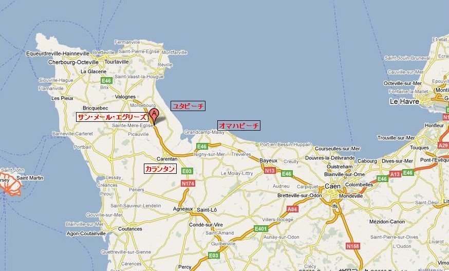 × [PR]上記の広告は3ヶ月以上新規記事投稿のないブログに表示されています。新しい記事を書く事で広告が消えます。 このブログのタイトルにあるノルマンディーとティーガーⅠ(タイガー戦車)と聞くと、すぐこの地名が頭に浮かぶ人も多いのではないでしょうか? ヴィレル・ボカージュの戦い(Battle of Villers-Bocage )で有名なノルマンディー地方の村 ヴィレル・ボカージュを訪れました。 ヴィレル・ボカージュは、ティーガー好きなら知らぬものはいない、戦車エース、ミハエル・ヴィットマンSS中尉を一躍有名にした戦いがあった場所です。 ヴィレル・ボカージュは、下の地図に示したように、ノルマンディー地方のカーンの西方にあります。 ヴィレル・ボカージュの戦いについては、ウィキベディア等に詳しく載っていますが、簡単に言うとカーン市攻略に手こずったイギリス軍は、第7機甲師団迂回させた。その旅団規模ともいえる先遣部隊が、ヴィレル・ボカージュで休息中、偵察にきていたヴィットマンのティーガー1台に攻撃を受ける。 ティーガー砲手「ふん、もう勝ったと思ってやがる」戦車長ヴィットマン「そうらしい、では教育してやるか」 ヴィットマンは、ティーガー戦車1輌で、イギリス軍戦車12輌、装甲車15輌を破壊。その後は増援のドイツ軍装甲部隊が到着し、イギリス軍は戦車、装甲車あわせて約60輌もの損害をだして、惨敗してしまい、連合軍のカーン攻略作戦に大きな影響を与えた戦いです。 この功績により、ミハエル・ヴィットマンはドイツ第三帝国総統アドルフ・ヒトラーより直接、柏葉剣付き騎士十字章を授与され、合わせてSS大尉に昇進しました。 下は当時の戦況図 このヴィレル・ボカージュの戦いについては、「ヴィレル‐ボカージュ ノルマンディ戦場写真集」に詳しく乗っています。 またヴィットマンについては、小林 源文 先生の「ヴィットマン戦記1943 」がおすすめです。 つづく。 PR サン・メール・エグリーズの教会のそばには、空挺博物館 (英語表記 The Airborne Museum フランス語表記 Le Musée Airborne ) があります。 外にはM4シャーマン戦車(M4A1E8 Sherman Tank)が飾られています。 残念ながら時間の都合で中は見ていません。博物館の中には、C47輸送機やWaco CG-4グライダーなど、オーバーロード作戦で米軍の空挺師団が使用した物が展示されているそうです。 詳しくは空挺博物館の公式HPをご覧ください。 サン・メール・エグリーズがある場所ですが、地図で示してみました。 サン・メール・エグリーズは、コタンタン半島にあり、アメリカ第4師団が上陸したユタビーチの背後に位置しています。半島の先端には、重要拠点であるシェルブール港もあります。アメリカ軍は上陸後、半島を分断しドイツ軍を孤立させ、シェルブール港を確保するという点でもこの村が戦略上重要だったのでしょう。 アメリカ第82および第101空挺師団の任務は、上陸海岸右翼の援護や後方かく乱であり、内陸部やコタンタン半島にいたドイツ軍の海岸への進行を食い止めるため、第一目標として、交通の要衝である、サン・メール・エグリーズとカランタンを奪取することでした。 作戦当日は、半島一帯は密雲につつまれておりドイツ軍の激しい対空砲火もあって、空挺師団の将兵は、広範囲に散って降下してしまいました。その結果、ドイツ軍が人工的に作った沼や、海に落ちて多くの犠牲者をだしました。しかし広く分散した米軍降下部隊は逆に、ドイツ軍にも混乱を引き起こすという予期せぬ効果もあげました。 混乱の中、第82空挺師団第505パラシュート連隊を中心とした空挺隊員たちは、6月6日早朝にサン・メール・エグリーズを占領することができ、この村はオーバーロード作戦によって解放された最初の街となりました。 |