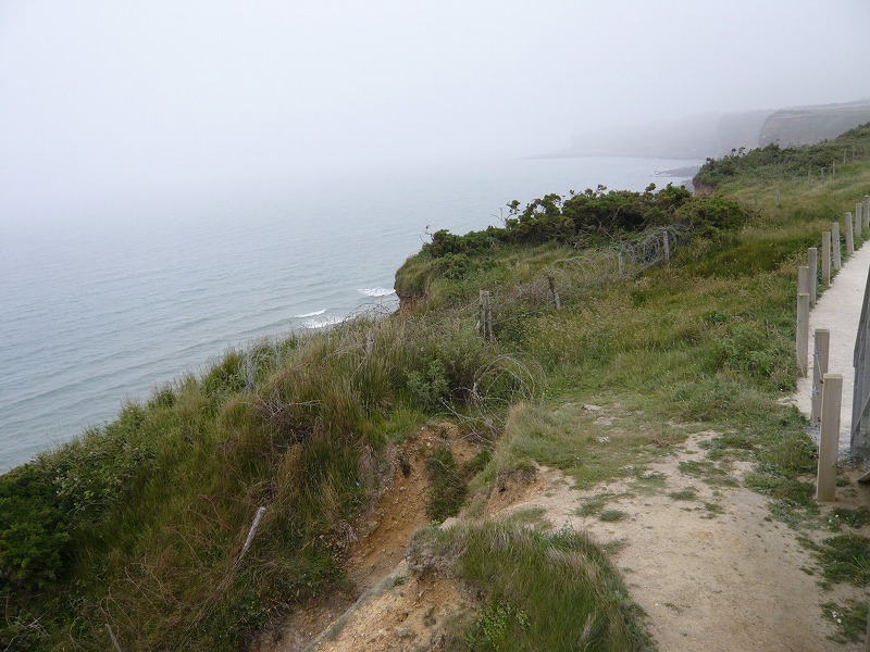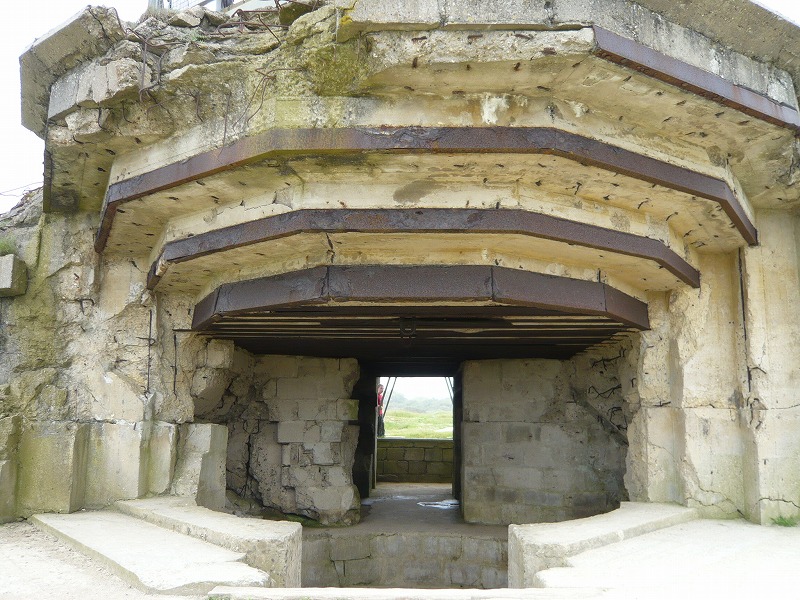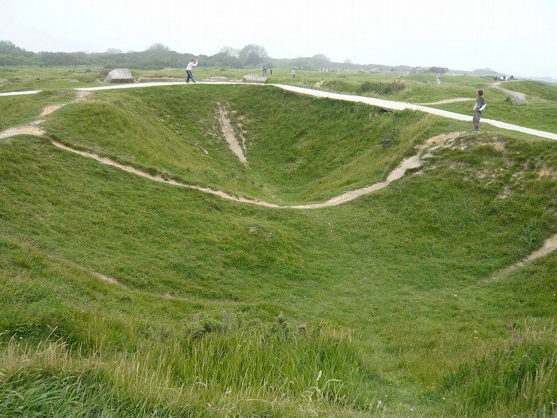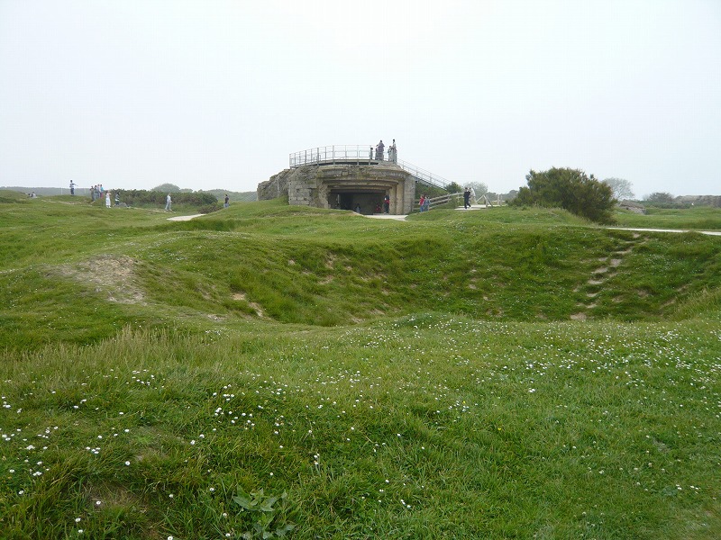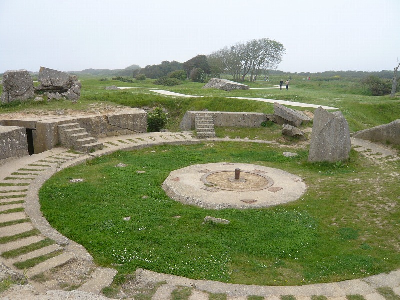 ノルマンディーにある米軍墓地とその下に広がるオマハビーチ、フォックスグリーン地区(fox green sector)の浜辺,そしてもっとも抵抗が激しかったドイツ軍の抵抗拠点のひとつ、WN62を訪れた時のビデオです。 ドイツ軍の砲兵陣地があった場所を見てみましょう。現在は牧草地のようなかんじになっています。 あちこちにこのような大きく穴がありますが、上陸前の連合軍の砲爆撃によってあけられた穴です。コンクリートでできたバンカー(注)もほとんどが破壊されています。 注:トーチカといったほうがわかる人も多い(自分もそうでした)と思いますが、トーチカはロシア語であり、日本語では特火点または掩蔽豪等、難解な言葉になります。バンカーは広い意味で使えますし、現地での英語表記についていることが多いので、この記事では英語のBUNKER(バンカー)という言葉を使っています。また、海外で戦場の跡を訪ねる際には、このBUNKERという言葉を知っていれば役に立ちます。フランス語はわからなくても、ノルマンディーのような観光地では、英語の表記が必ずついているからです。 バンカーの形が残っている建物が一つあった。 前の記事で、かんじんの大砲がここにはなかったと書きましたが、おそらくあまりの爆撃の激しさに、大砲を守るために移動したのでしょう。 ↓ こちらは、建物が完全に破壊させれて大砲の台座のようなものが見えています。古代遺跡のようにも見えますね。 岬より東側(オマハビーチ方面)を望む。 |