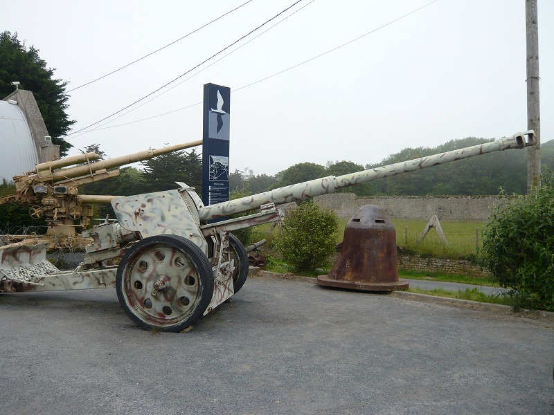 外にはドイツ軍がビーチに置いた対戦車障害物や大砲などが無造作においてありました。 これはいったいなんなんでしょう?鉄でできた、ドイツ軍の銃座だと思われますが、軍艦とかからはずしたものなのでしょうか? ここの目玉はこれでしょうか?現場には説明がついてなかったのですが、形から推測して、ドイツ軍の88mm対戦車砲 8.8 cm PaK 43/41 だと思います。 おなじく88mm高射砲(通称アハト・アハト)8.8cm FlaK 36?でしょうか。 パンター戦車の砲身?なんとも、展示の仕方が適当で、スクラップ屋さんのようです。w 外の展示物はこんなものでした。では、次回はオック岬を紹介します。 |