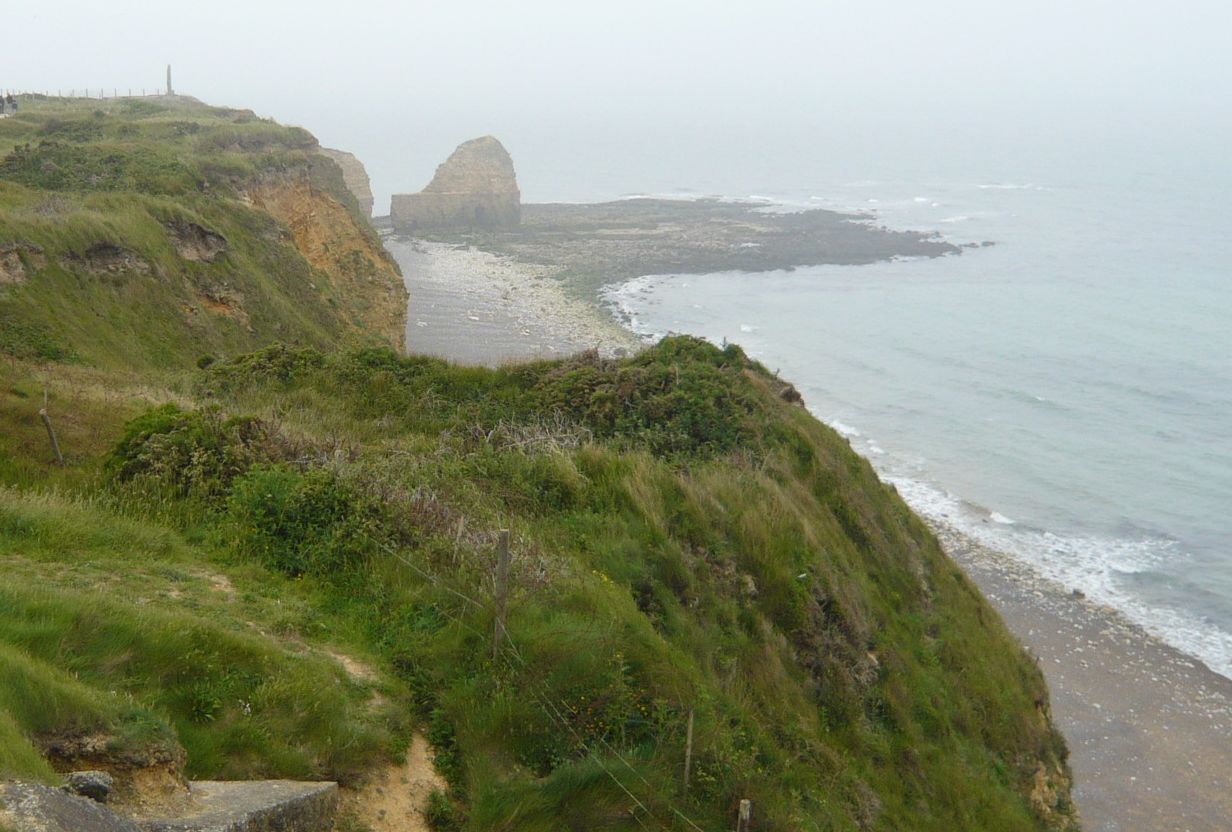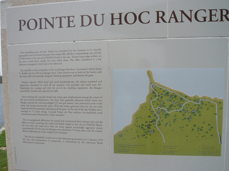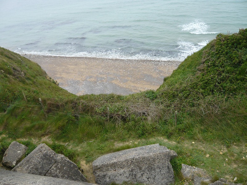 × [PR]上記の広告は3ヶ月以上新規記事投稿のないブログに表示されています。新しい記事を書く事で広告が消えます。 オック岬(Pointe du Hoc)の名前の由来になった帆のような形をした岩が見えます。 映画史上最大の作戦 ↓映画のシーンより。あたりまえですが、そっくりですw オック岬はアメリカ軍(以下米軍)の上陸予定地点であるオマハビーチとユタビーチのどちらも攻撃できる絶好のポイントで、米軍にとっては、上陸作戦を成功させるために、ここの要塞の大砲(155mm砲)を破壊しなければならなかった。 そこで本隊の上陸開始とともに、ジェイムズ・ラダー中佐ひきいる225名の米第2レンジャー大隊は敵の砲火の下、ロープと梯子を用いて高さ約30mの崖を登り、制圧することになった。 注:レンジャー大隊とは、現代で言う特殊部隊で、志願兵で構成される精鋭部隊である。映画プライベートライアンのミラー大尉も第2レンジャー大隊という設定になっている。 上から手榴弾や、弾丸が降ってくる中、ロープ1本で崖をよじ登るなんて、普通に考えたら自殺行為ですね。戦争とはほんとに、恐ろしいものです。 さて多くの犠牲を払って、レンジャー部隊は岬を制圧することに成功しましたが、目標であったはずの大砲は、すでにドイツ軍によって移動された後でこの要塞にはなかったそうです。この戦闘のあと、225名のレンジャー隊員の内、戦闘可能な兵士はわずかに90名だったそうです。 兵士たちが、命がけでよじ登ったであろう崖を上から覗く 反対側(西側)から岬を望む。いかに切り立った崖かというのがわかると思います。 PR